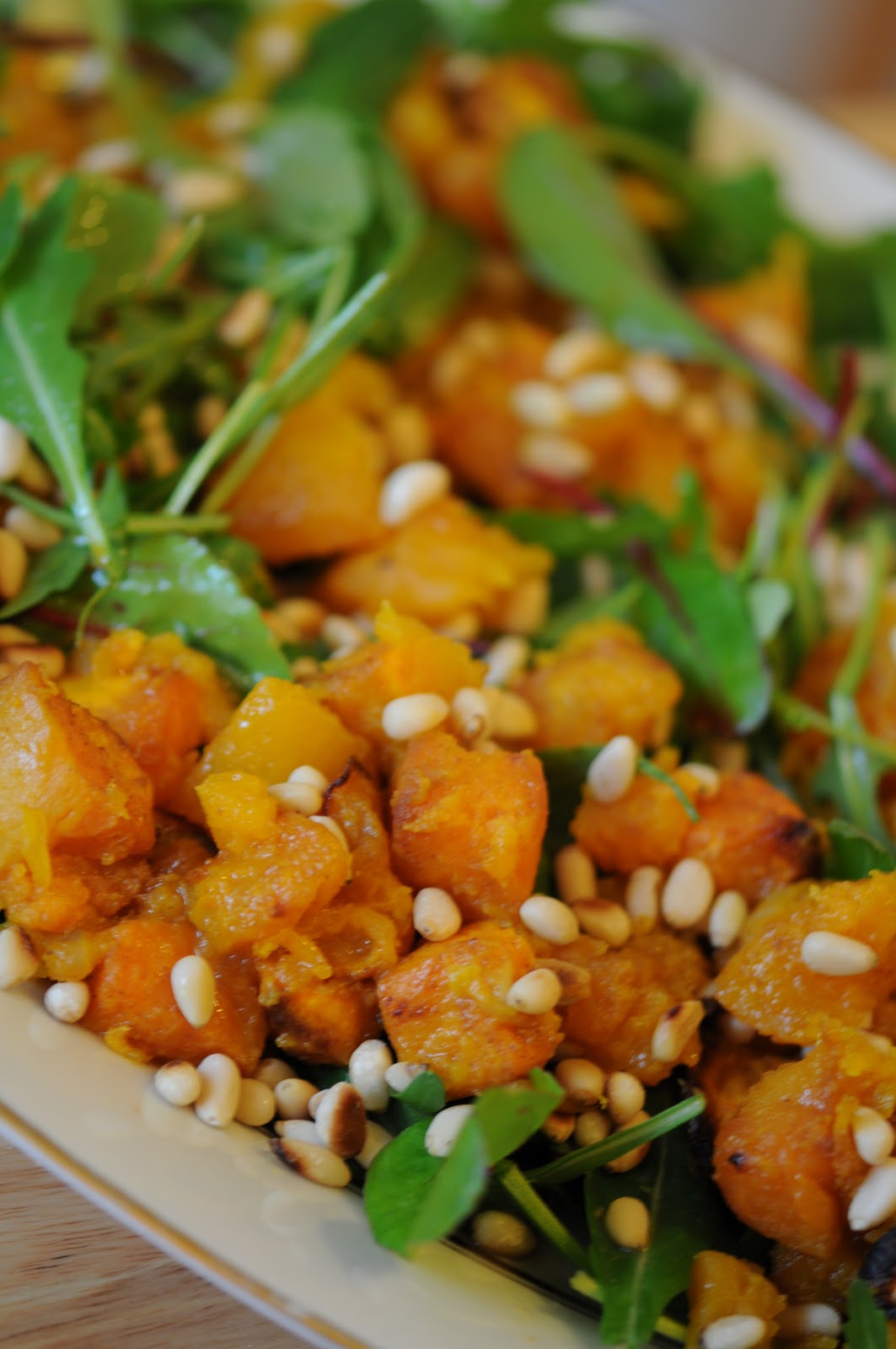 I served the butternut salad alongside a platter of well-seasoned, sliced grilled steak (Nigella suggests her Indian-rubbed lamb chops) a creamy roll of local goat’s cheese (which complemented the squash and steak perfectly) and some oven baked bread. My guest’s plates were all left empty, which I can only take as a good sign.
