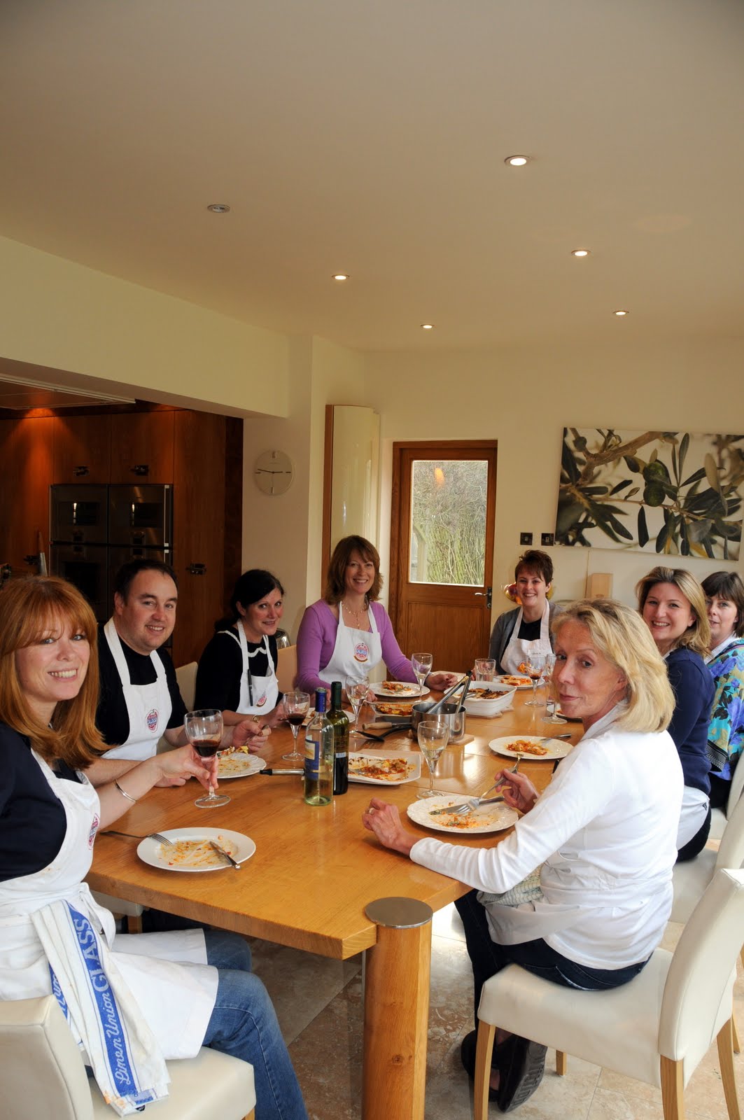 After a long morning of very hard work, all that was left to do by 2pm was to gather round the table, pour a glass or two of wine and share our Italian feast. We were even lucky enough to be able to open the doors out onto the garden and eat ‘al fresco.’ We were all very proud of ourselves and pretty amazed by just how much we had learnt in one morning. We finished off the meal with a simple Italian dessert of fresh figs baked with orange zest, orange juice, brown sugar and a drizzle of honey served with an Amaretto cream, which was so simple and yet would be a really impressive way of ending a dinner party. Sadly, there was nothing left to take home, apart from our recipes and newly found skills – we were certainly all enthused to try it all out again at home!