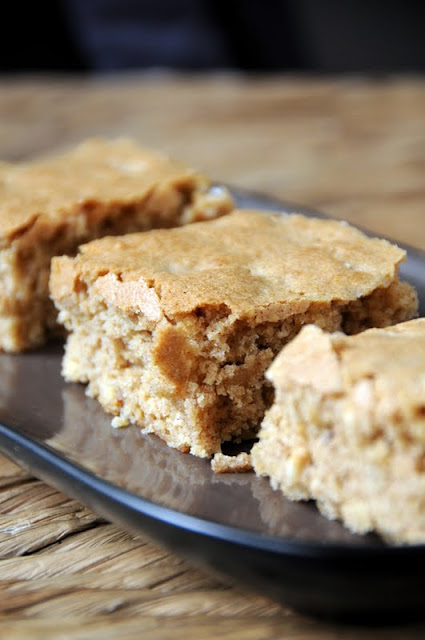 6. When the blondies have cooled slightly, run a knife around the edges to loosen. Let them cool, then cut into squares.