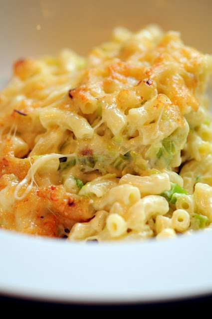 Ingredients 250 g macaroni pasta 200 ml double cream Salt & Pepper Method Pre-heat your grill. Bring a large pan of salted water to the boil. Add your macaroni or other shaped pasta to the pan, stir and cook according to the packet instructions (firmer/al dente is best) Finely chop your leeks, add a tablespoon of olive or rapeseed oil to a frying pan and gently fry your leeks for a few minutes until they soften. Pour the cream and crème fraîche into a pan and gently bring to the boil. Once it is very gently bubbling, add the grated Gruyère cheese and mix well. (For extra flavour you could add some extra cheddar too) Add the Dijon mustard and mix again. Take off the heat and add your egg yolk. Season with salt and pepper and stir again keeping it off the heat. Drain your pasta and add it to the pan of cheese sauce, tip in the cooked baby leeks. Mix well until all the pasta is coated. Sprinkle over the cheddar cheese (or use more Gruyèreor any firm cheese) and place it under the hot grill just until the cheese starts bubbling and melting. Serve and eat as soon as possible. |