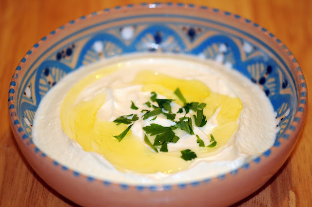 This week, I’ve made a healthy Middle Eastern dish called Lebneh, which is a soft cheese made from yoghurt. I made mine with some of the fat-free natural pro-biotic yoghurt sitting in my fridge. Much too sour (for my taste) to eat on its own. However, straining it (which removes the whey) turns into a lovely and much more indulgent cream cheese, which can then be used as a dip (for crudites or wholemeal pitta) or can be used as a topping (see second recipe below.)